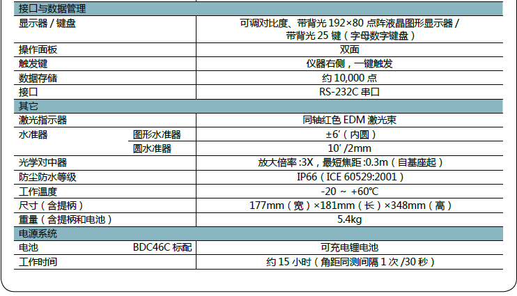 ● ES-52 所具有的編碼器能夠保證在持續(xù)測量條件下角度的可靠性。雙軸補(bǔ)償器能夠保證儀器在地形惡劣的環(huán)境下仍精確水平