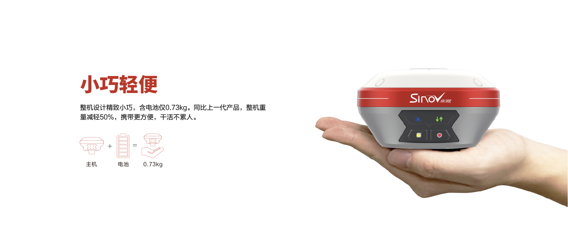 M6II口袋RTK,干活不累人,小巧輕便,含電池僅0.73kg,同比上一代產(chǎn)品,整機(jī)重量減輕50%,攜帶更方便,干活不累人;M6II口袋RTK手簿,贈送3年測繪流量,網(wǎng)絡(luò)模式使用更便捷;超大容量鋰電池、超強(qiáng)續(xù)航,讓測量不再等。